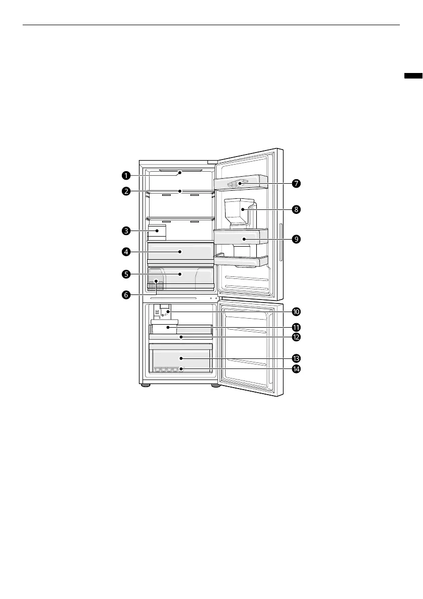 • The shelf height can be adjusted by inserting the shelf in another groove of different height.