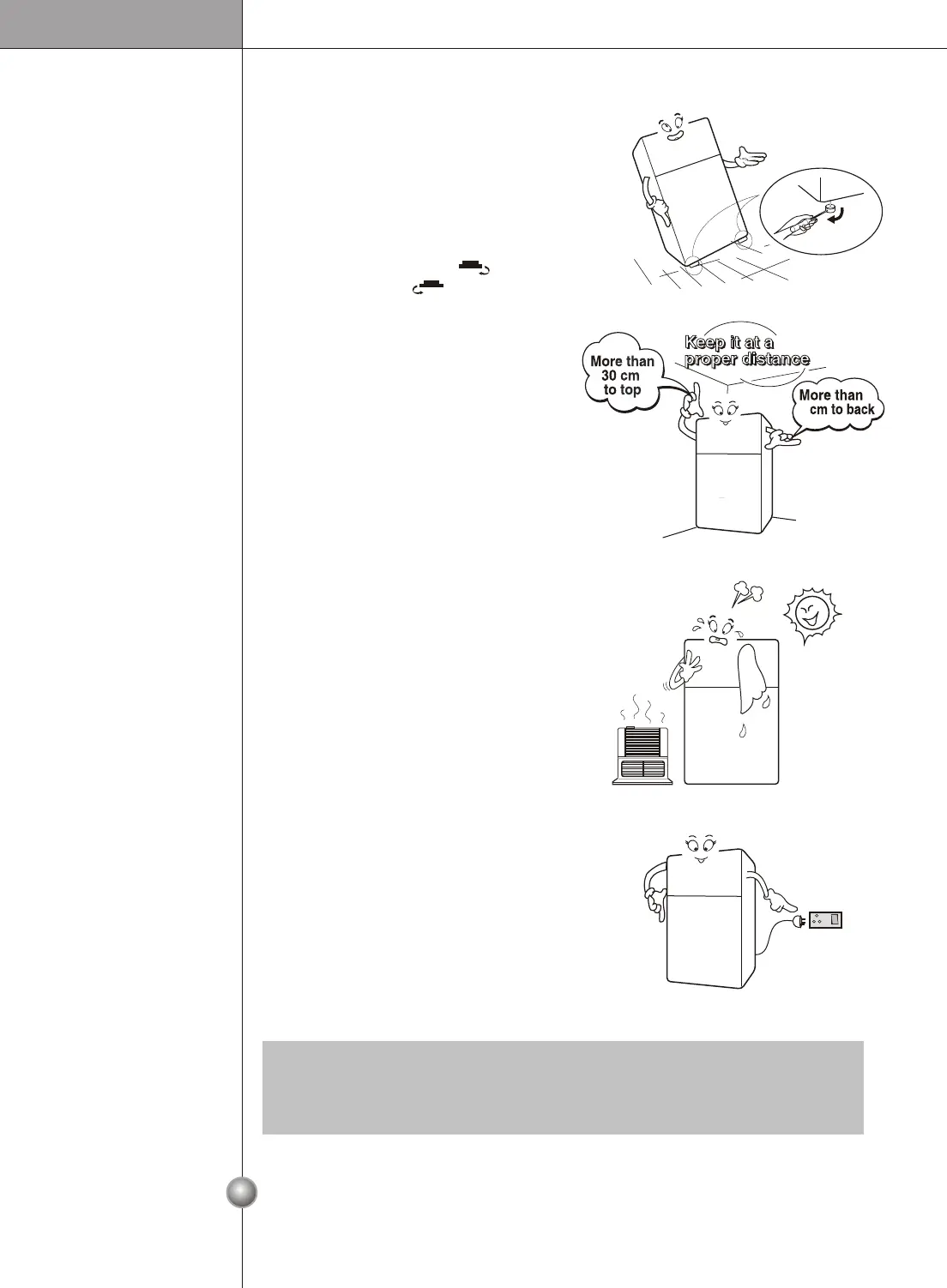 Install the refrigerator at a place where the ambient temperature is 5ºC