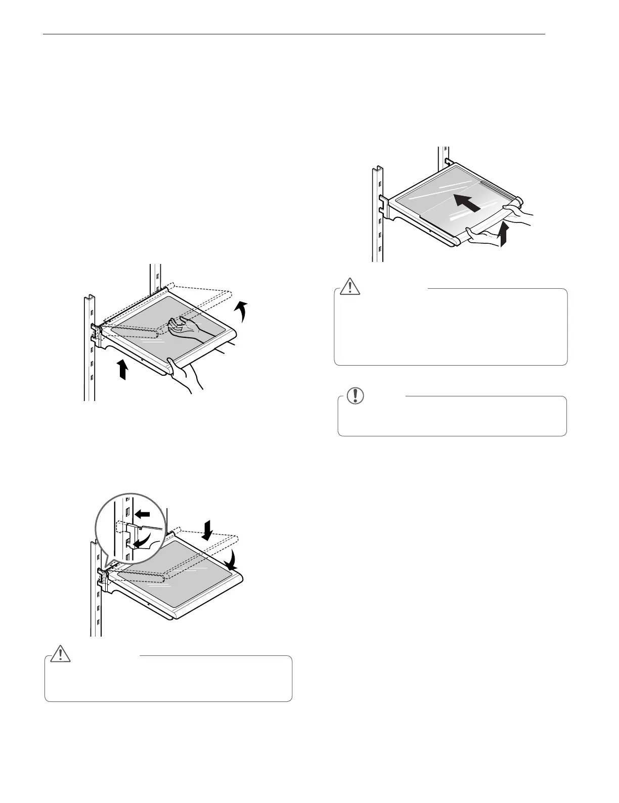 Tilt up the front of the shelf and lift it straight up. Pull the