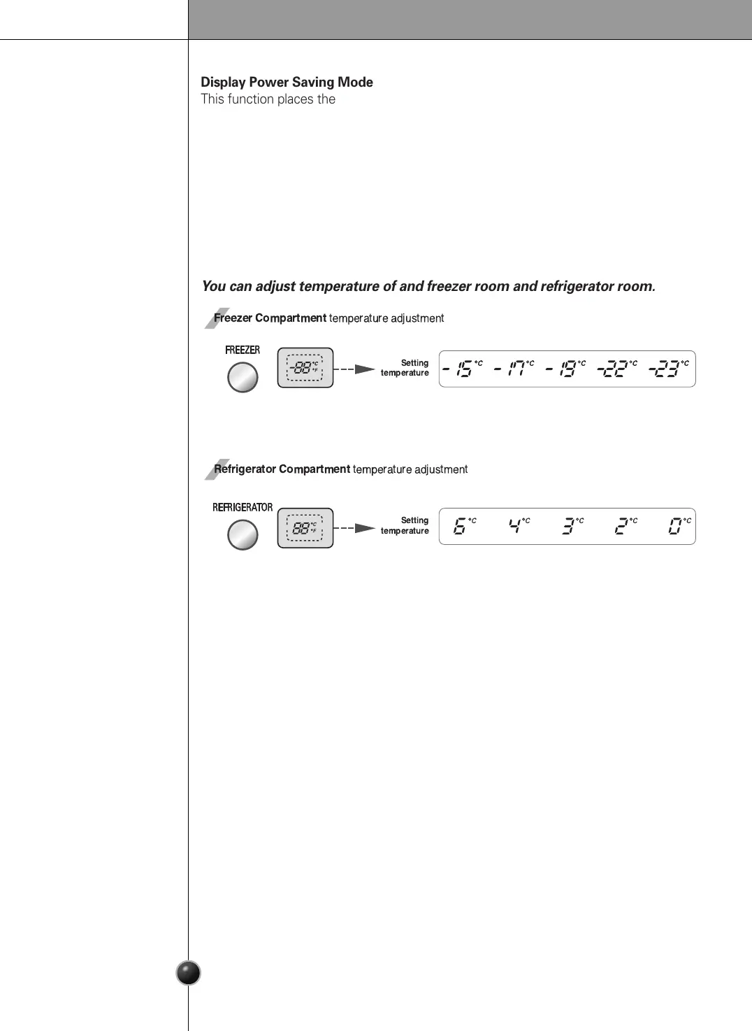 To deactivate the power saving mode, press the FREEZER and EXPRESS FRZ.