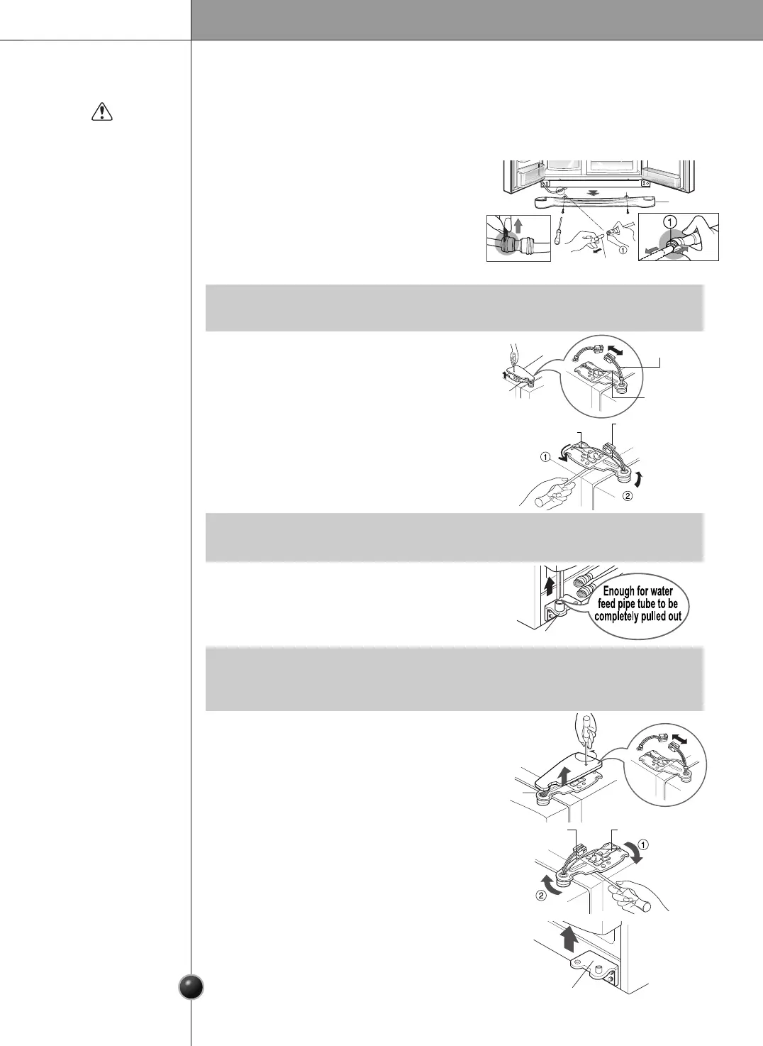 When removing the upper hinge, be careful that the door does not fall forwards .