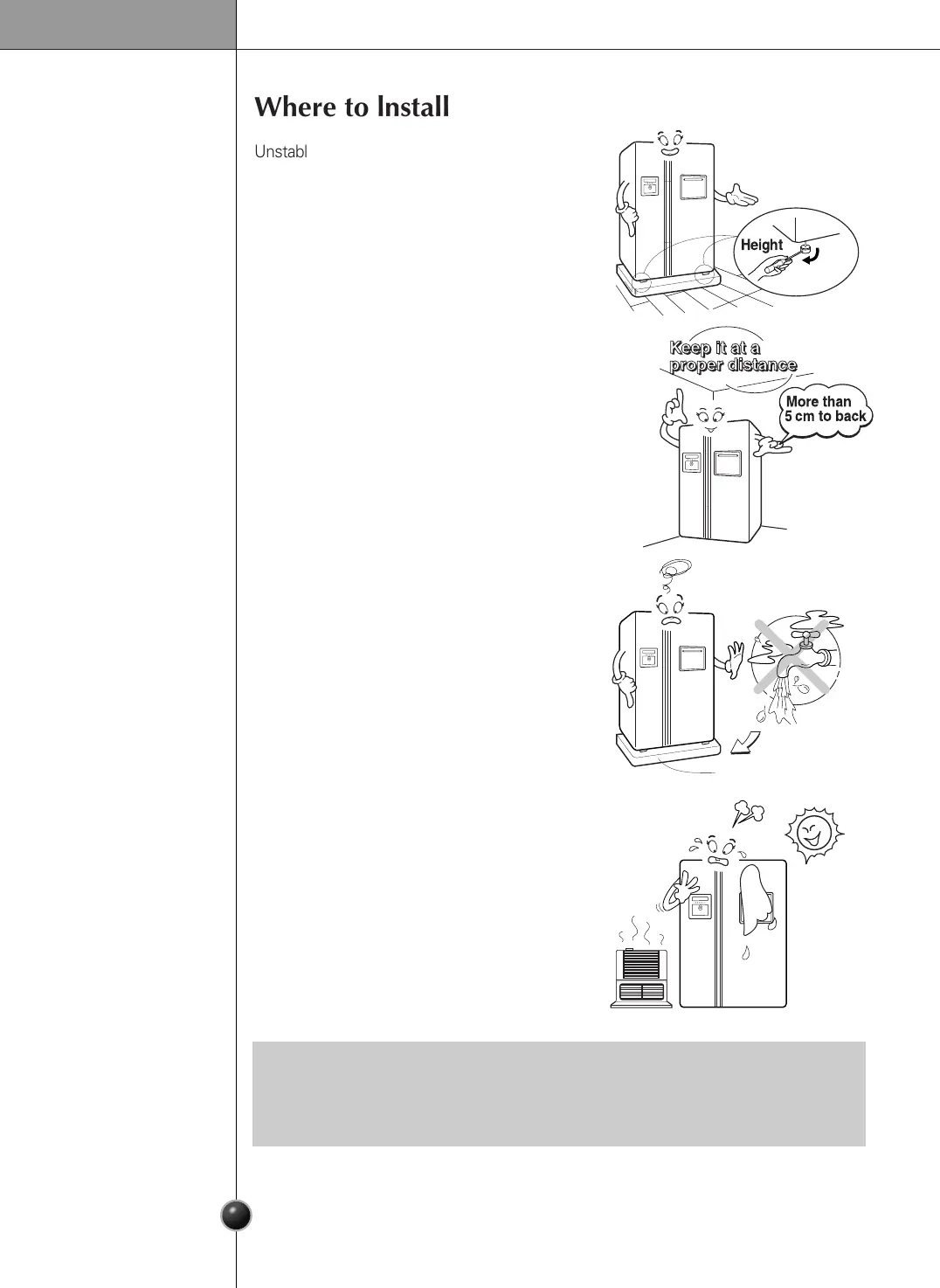 Install the refrigerator at a place where the ambient temperature is 5˚C