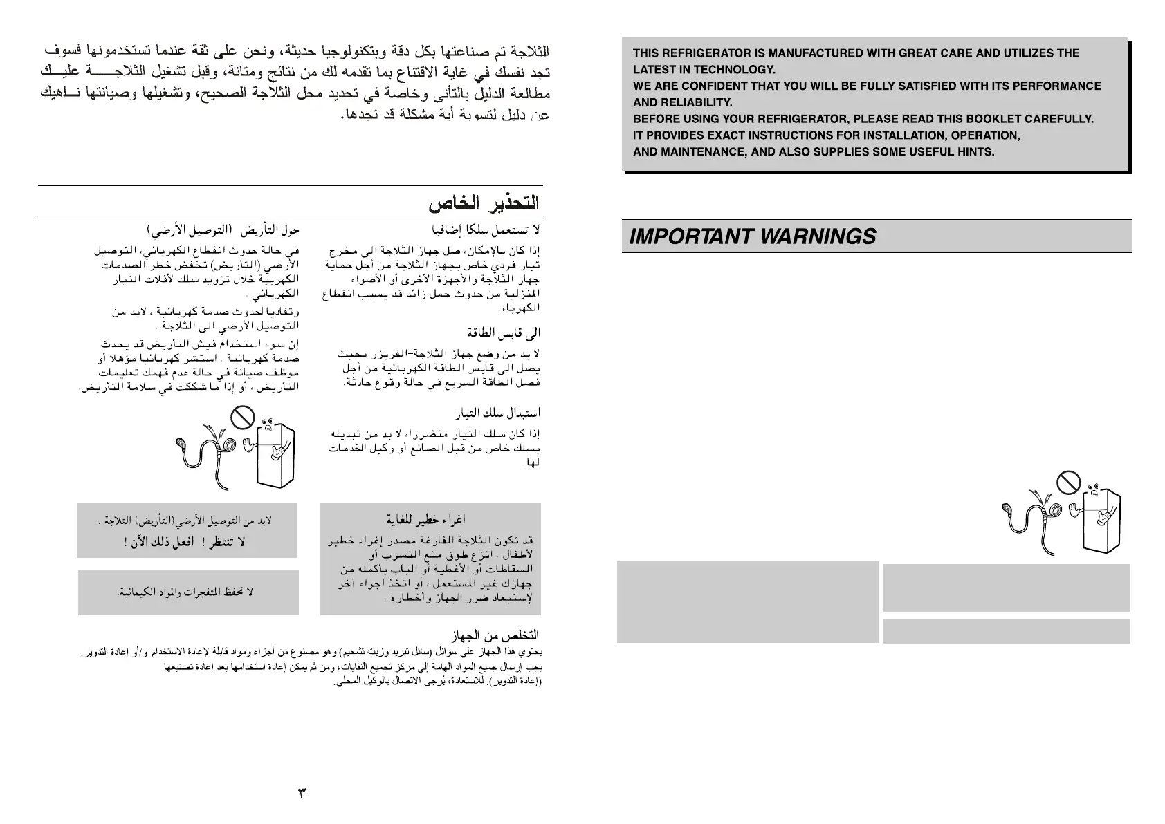 This appliance must be grounded (earthed).