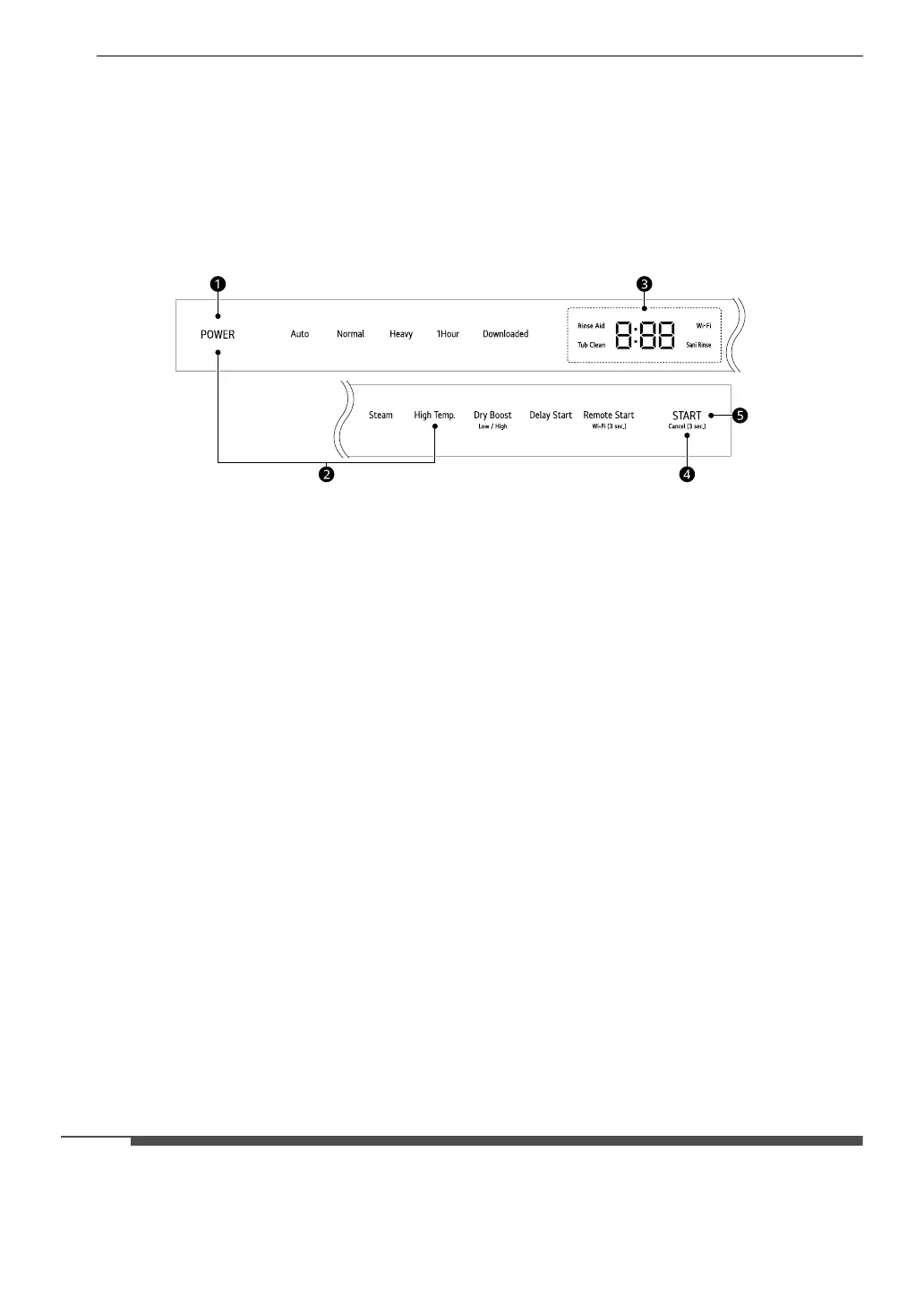 • Press the POWER button to light up the other keys in the control panel. The selected cycle and options
