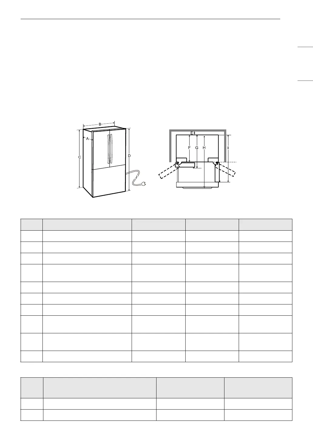 F Depth without Door 24 13/16" (630 mm) 24 13/16" (630 mm) 29 1/2" (748 mm)