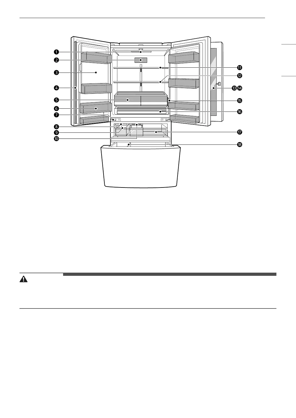 The refrigerator doors and freezer drawers close automatically when pushed slightly. (The door only