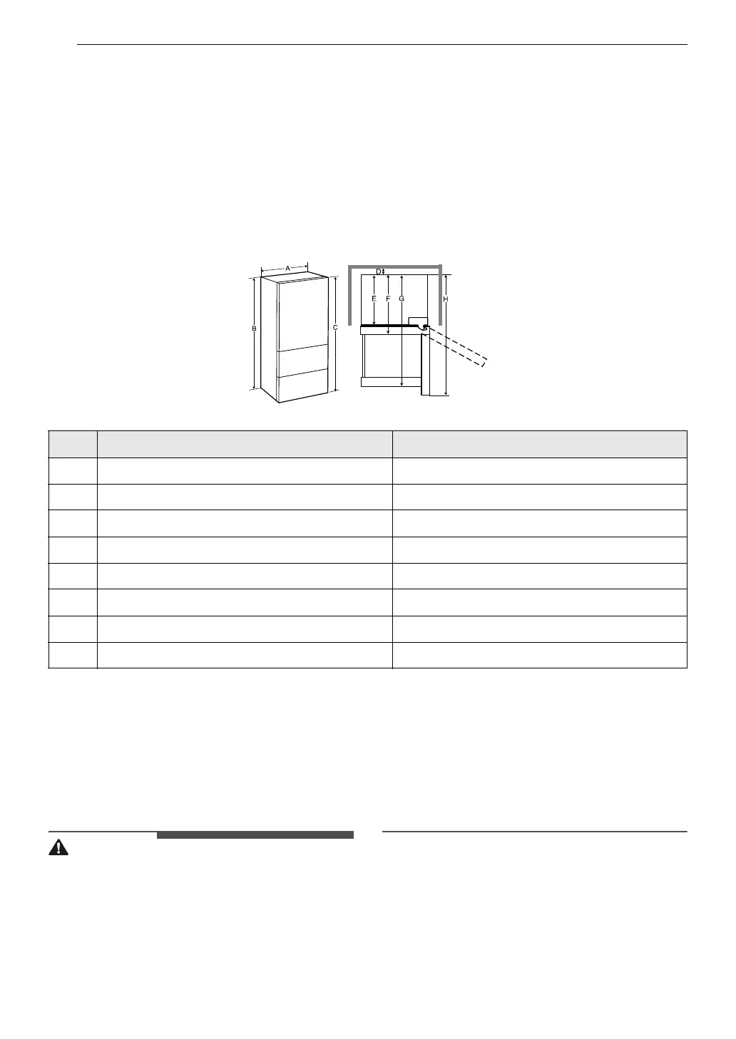 • The installation location chosen for the refrigerator should allow space behind the unit for connections