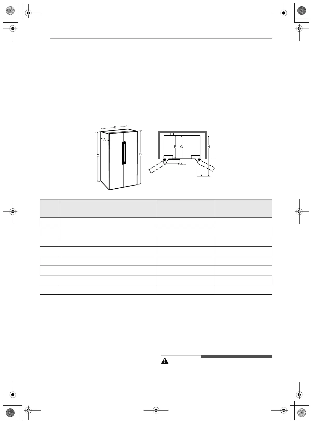 • Remember to allow enough room in front of the refrigerator to fully open the doors and drawers.