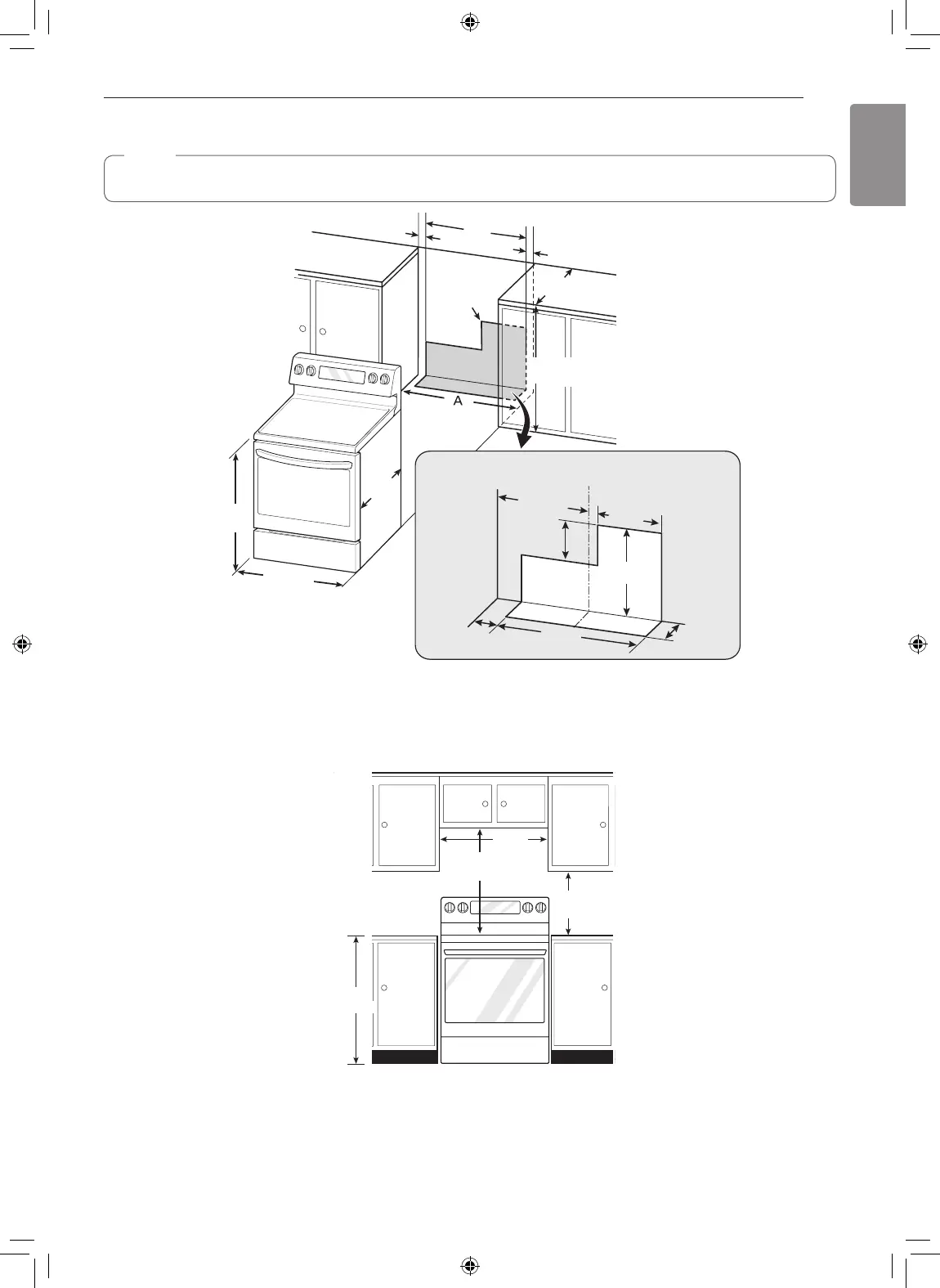 ** 15" (38.1 cm) minimum between countertop and adjacent cabinet bottom.