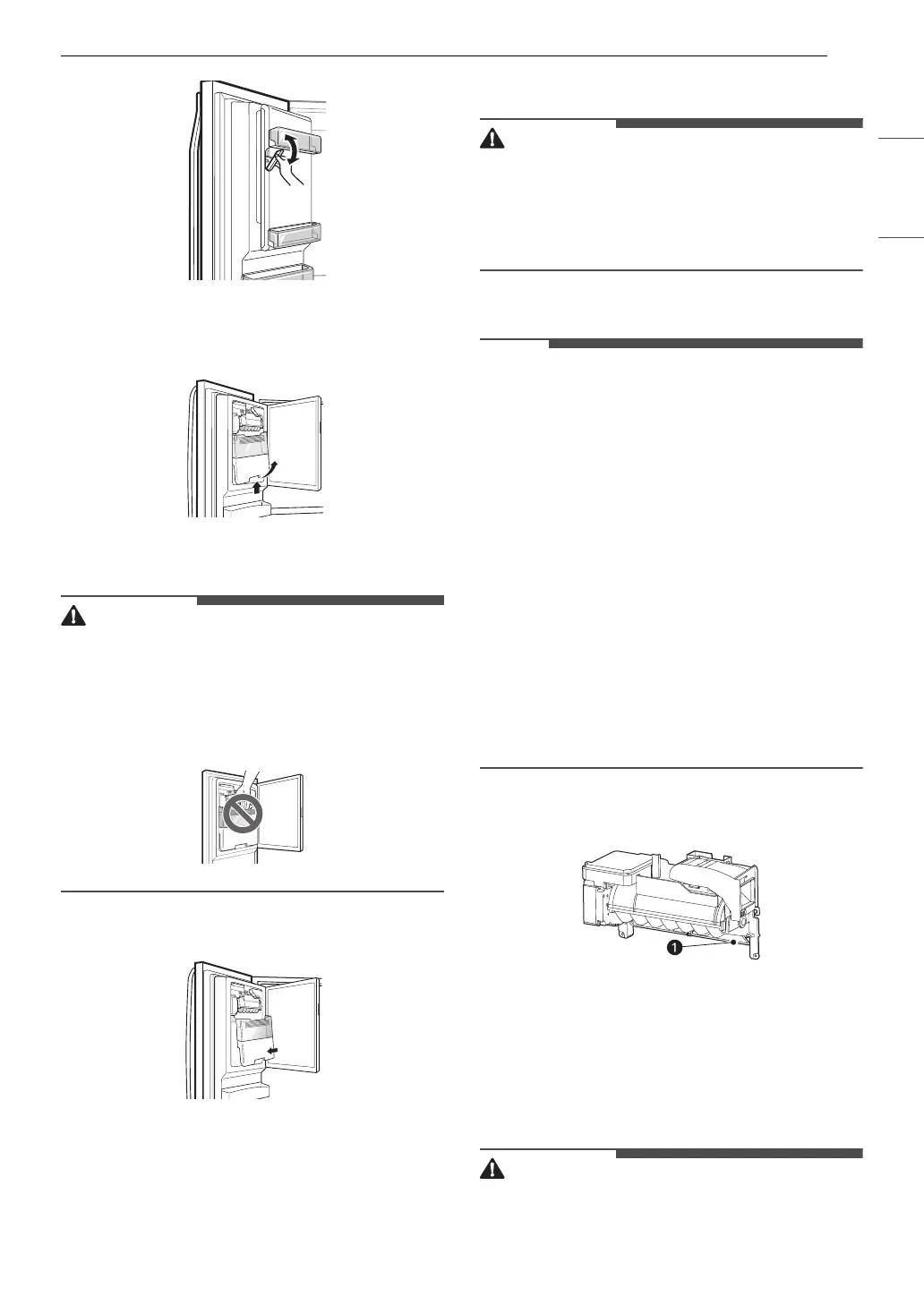 • When handling the ice bin, keep hands away