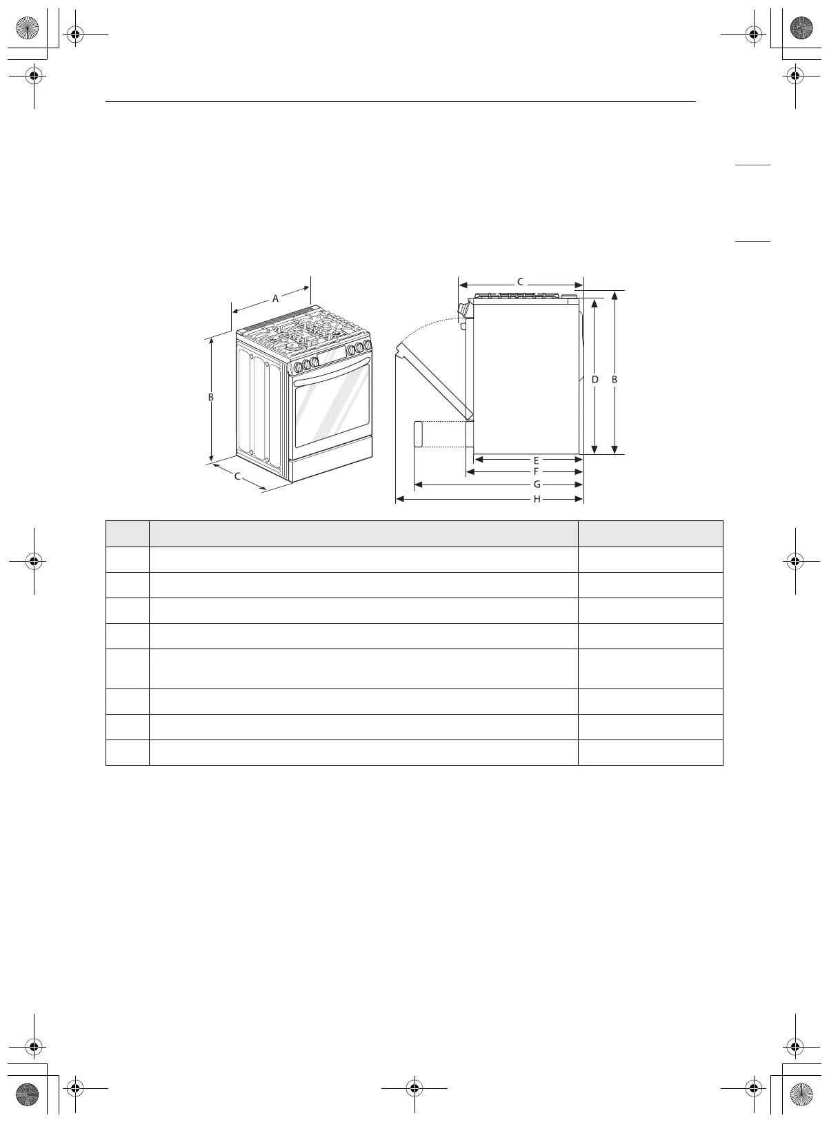 • The location of the electrical outlet and pipe opening (see "Gas Pipe and Electrical Outlet Locations"