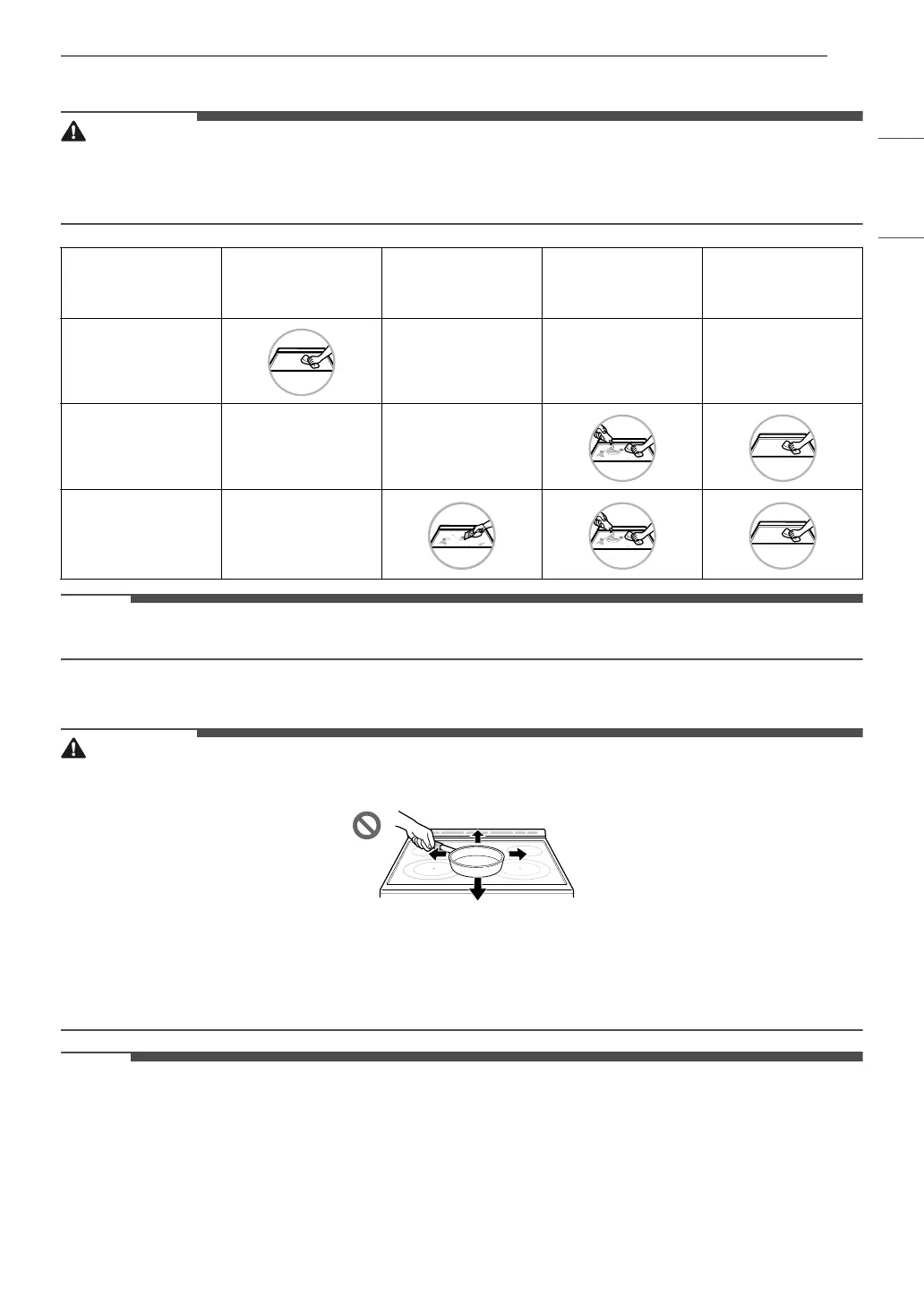 - Be careful not to slide pots and pans across the cooktop. Doing so will leave metal markings on the