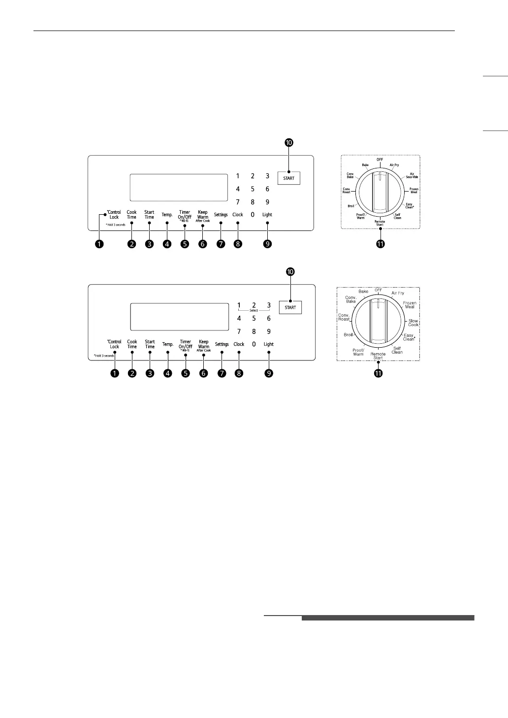 Press the button to select and adjust oven