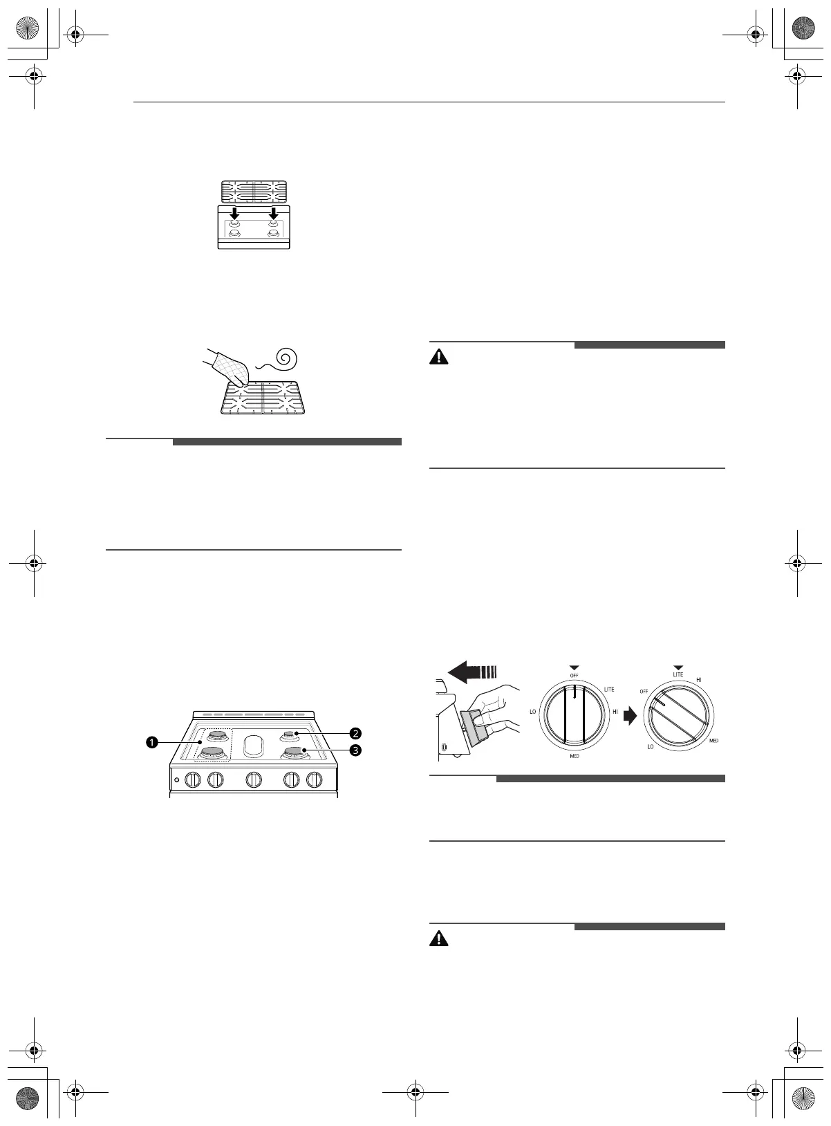 • Asegúrese de que los quemadores y las rejillas