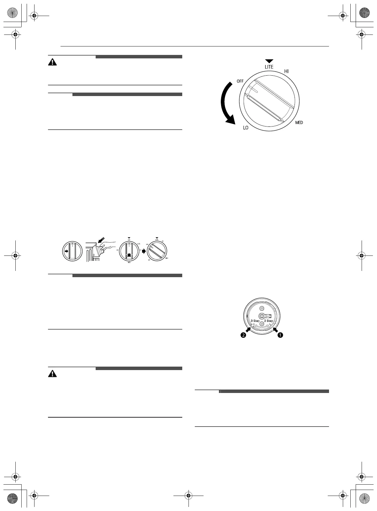 4 Push the control knob in and turn to the LITE