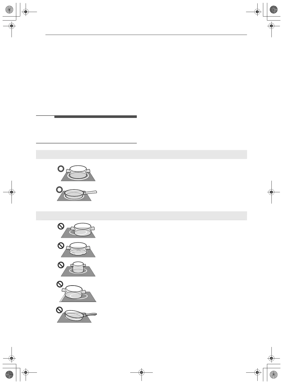 • Pan rests completely on the cooktop surface.