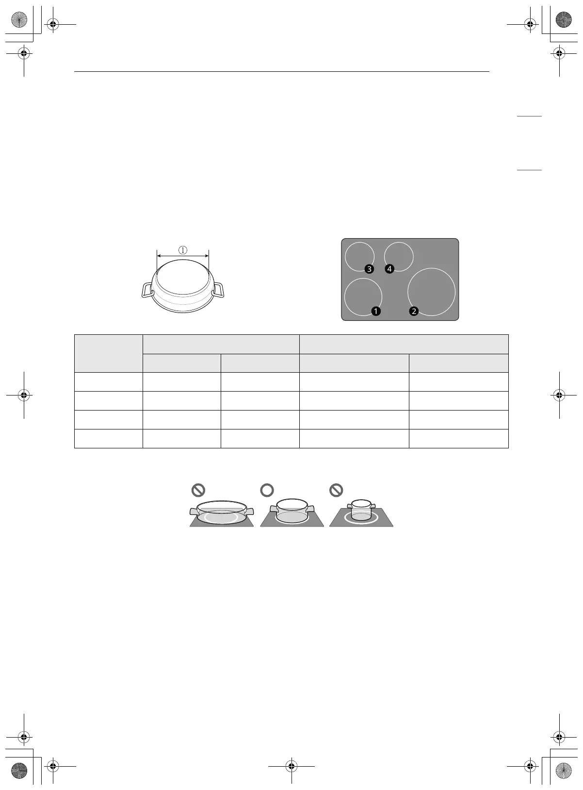 to be used effectively. The bottom size of the pan must be between the maximum and minimum diameter