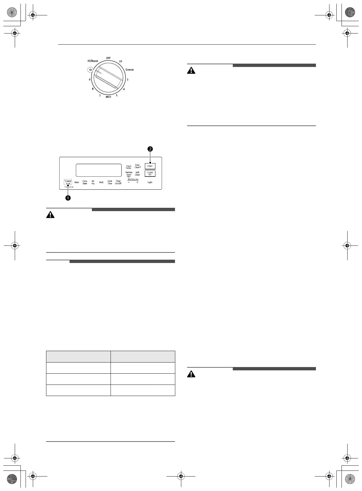 • The surfaces of the knobs may be hot after