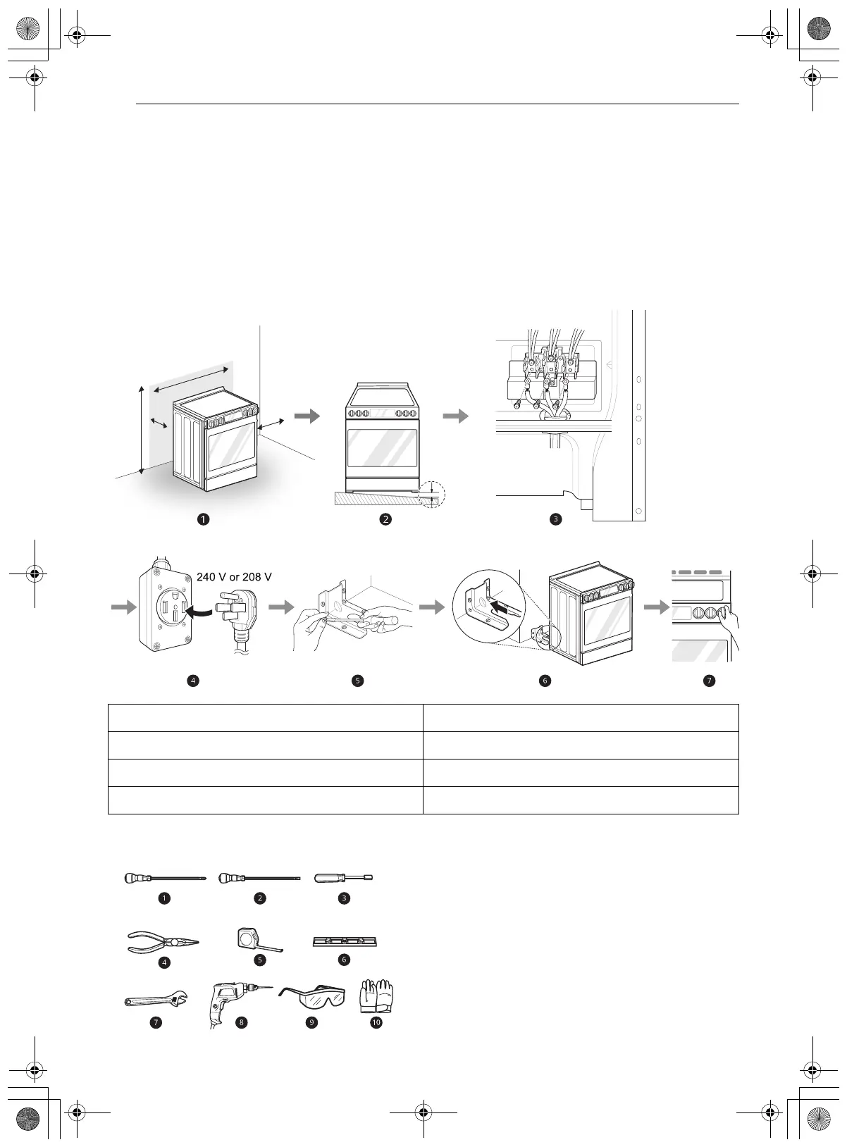 b Level the range f Engage the anti-tip device