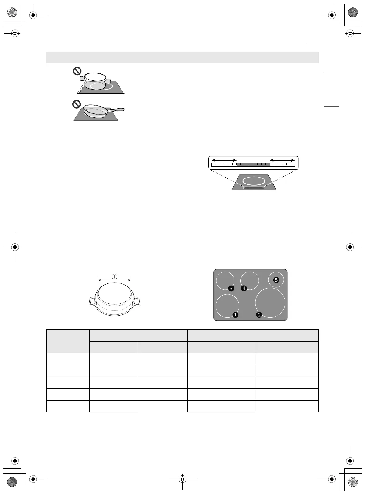 to be used effectively. The bottom size of the pan must be between the maximum and minimum diameter