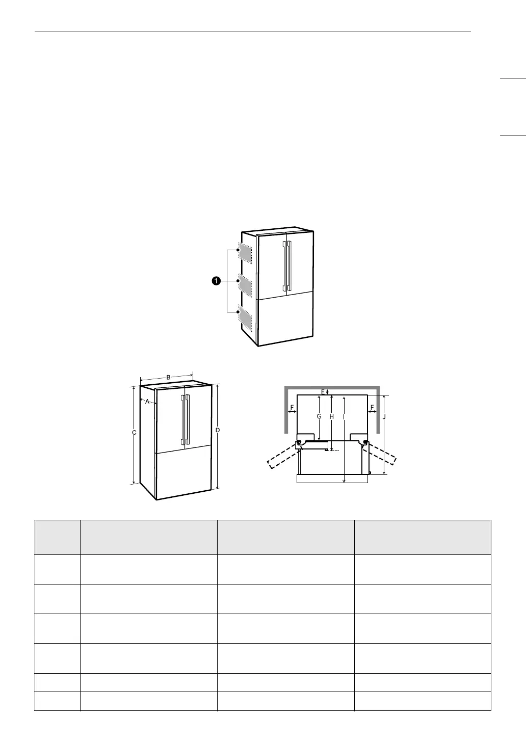 doors, and at least 2 inches (50.8 mm) between the back of the refrigerator and the wall.