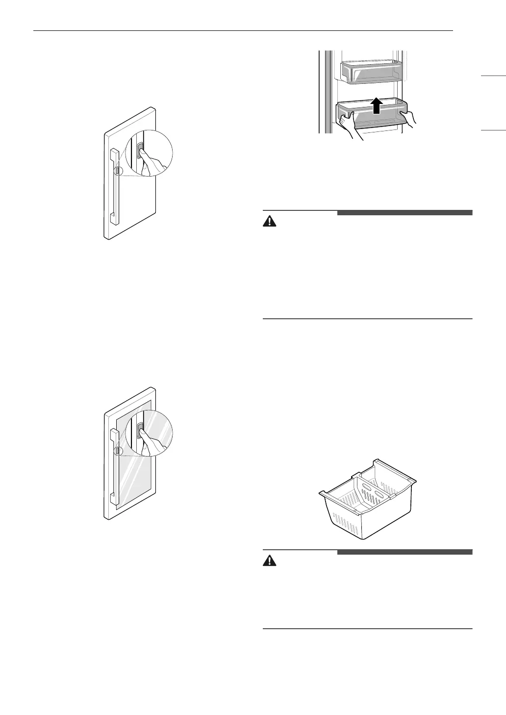 • Regularly detach and wash the storage bins and