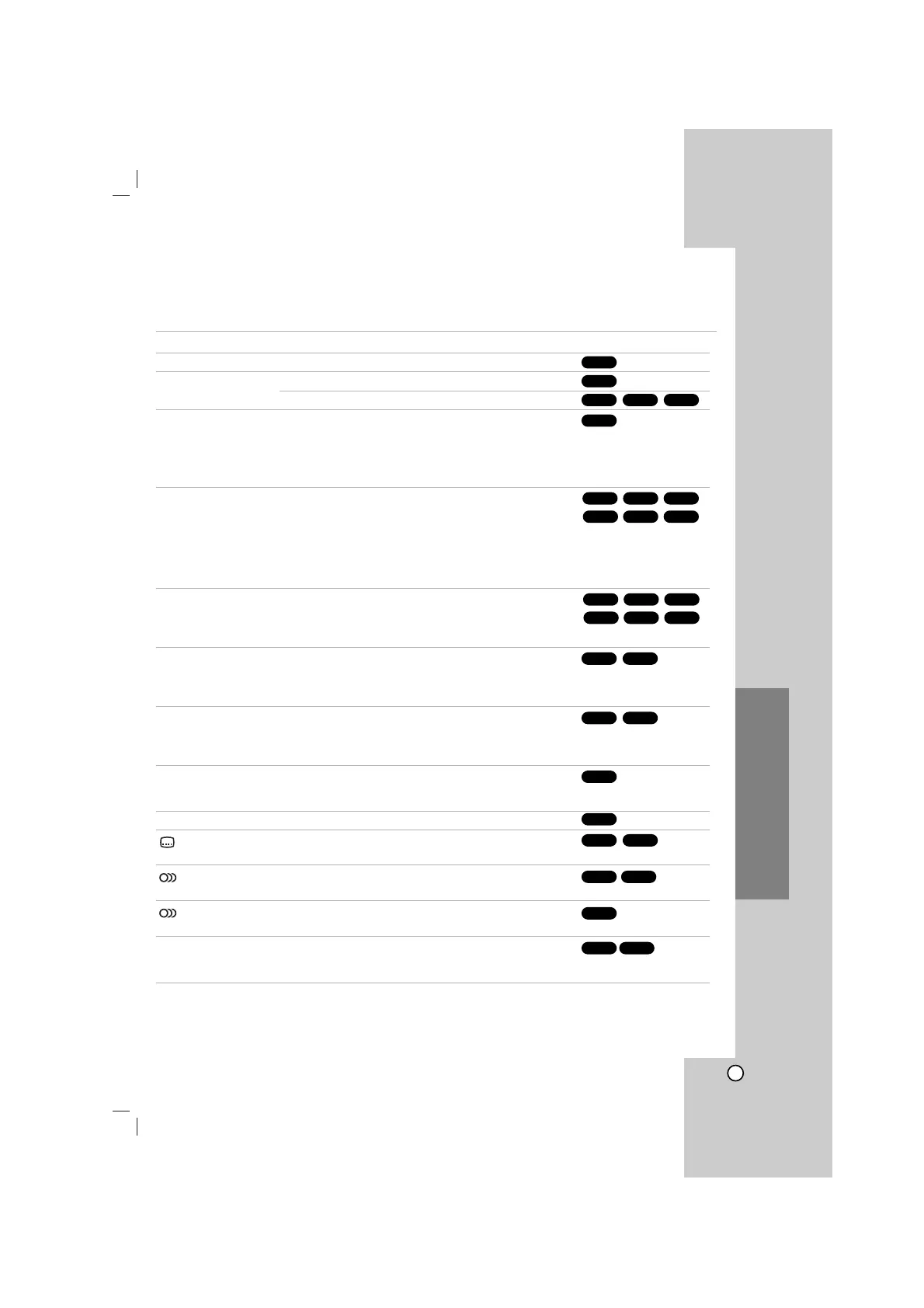 Video CD, Audio CD, DivX/MP3/WMA discs: Track/All/Off