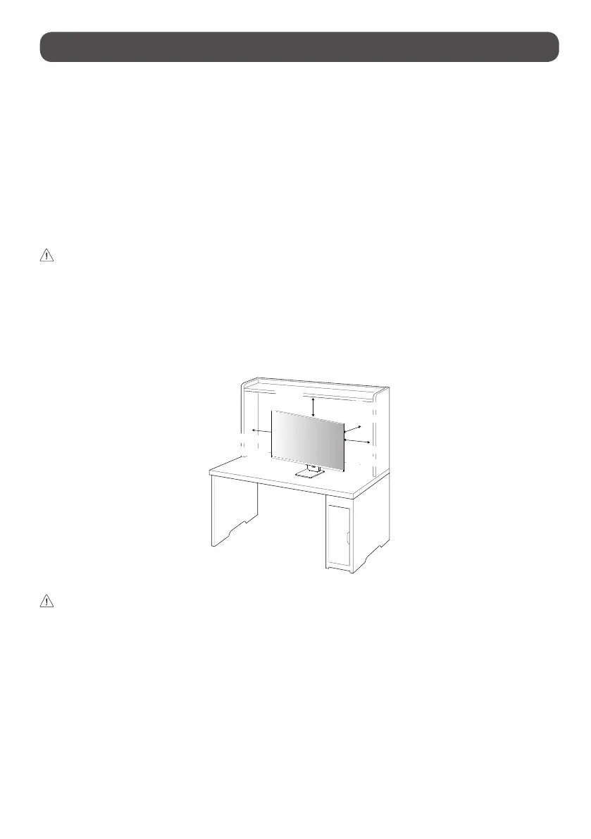 • Lift the monitor and place it on the table in an upright position. Place the monitor at least 100mm (3.9inches) away from the wall to ensure sufficient