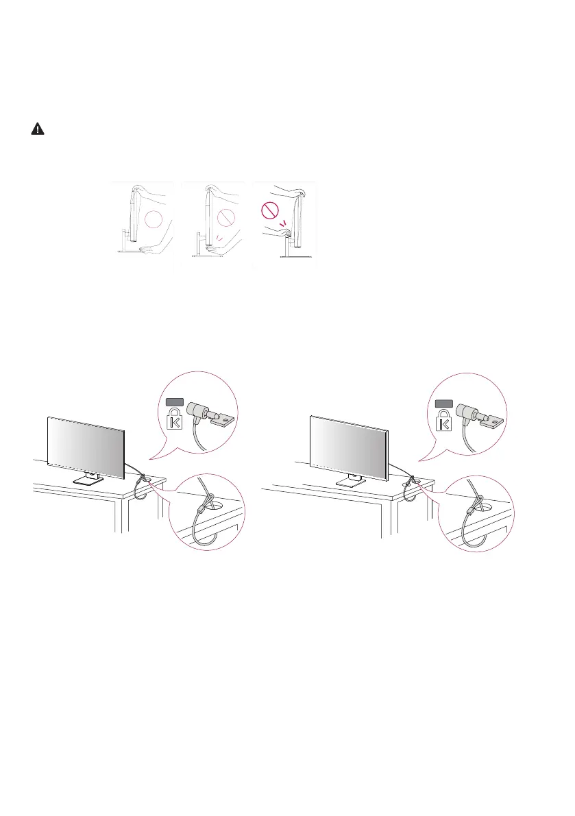 • Be careful not to touch or press the screen area when adjusting the angle of the monitor.