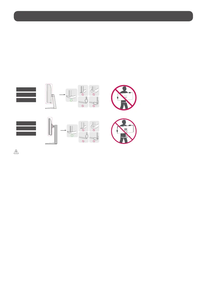 • Hold the side and bottom of the Monitor frame firmly. Make sure not to hold the transparent part, speaker, or speaker grill area.