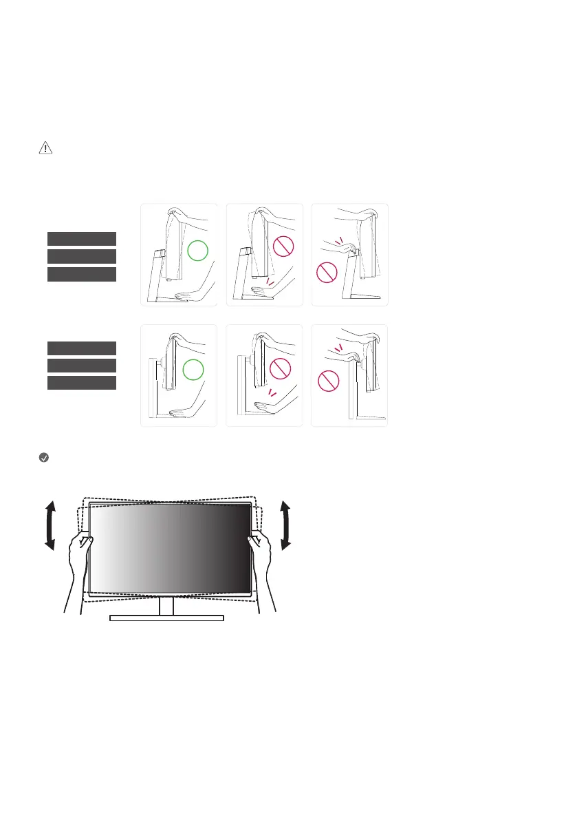 • To avoid injury to the fingers when adjusting the screen, do not hold the lower part of the monitor’s frame as illustrated below.
