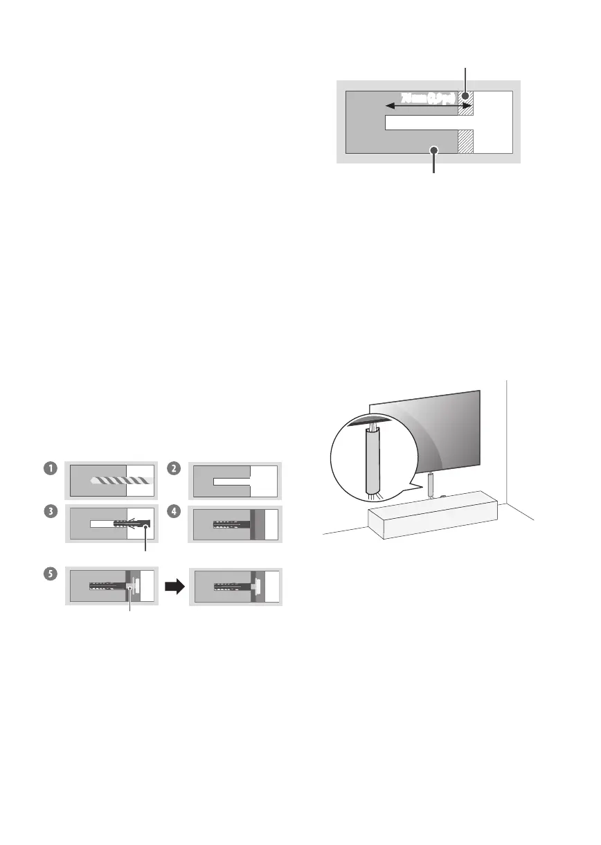 • Le support mural doit être fixé à un montant.Cela ne pose généralement