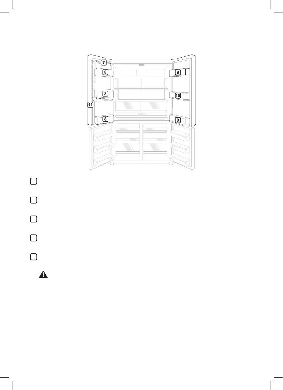 • To reduce the risk of scratching the door or breaking the center door mullion, make sure that the