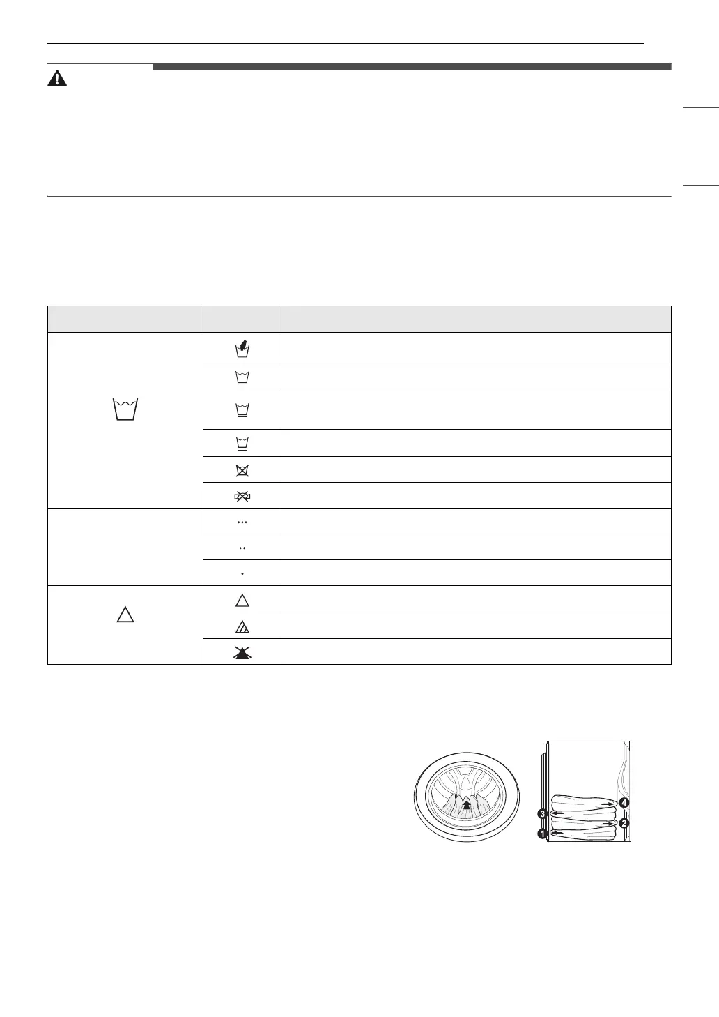 • Remove the stuffing from pillows and cushions before washing the covers. Failure to do so can cause