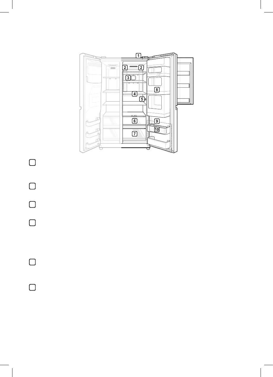 • The shelf height can be adjusted by inserting the shelf in another groove of different height.