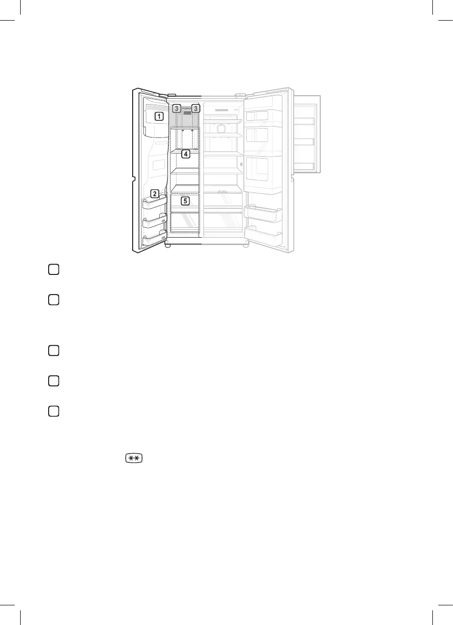 • The 2-star section ( ) basket or drawer can be used to store ice and food from -12 °C to -18