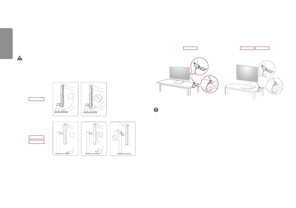 • To avoid injury to the fingers when adjusting the screen, do not hold the lower part of the monitor’s frame as