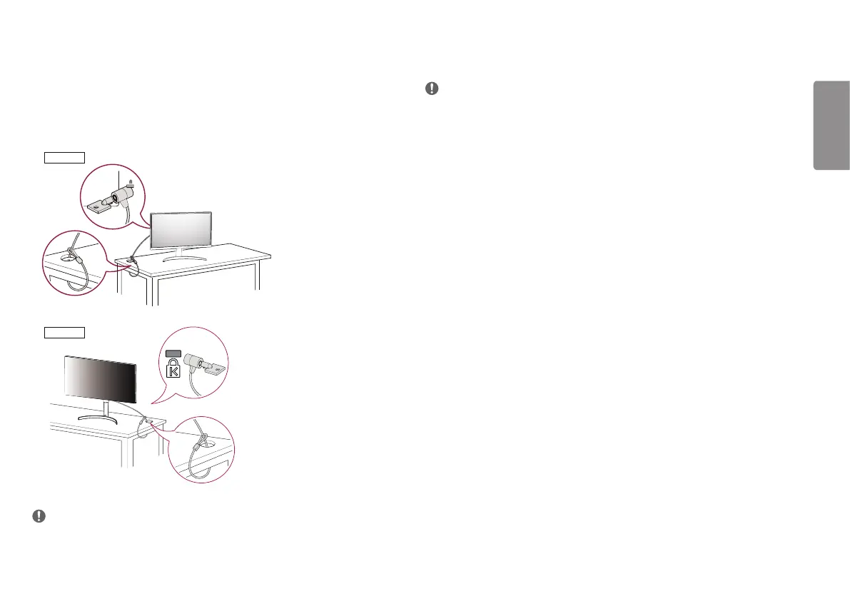 Bevestig de monitor aan een tafel met de kabel van het Kensington-veiligheidssysteem.
