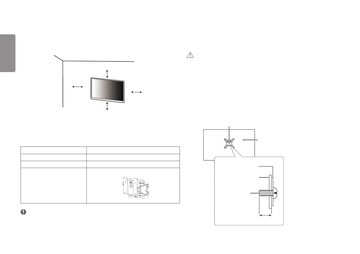 Bevestig de monitor ten minste 100mm van de muur af en laat ongeveer 100mm ruimte aan alle kanten van