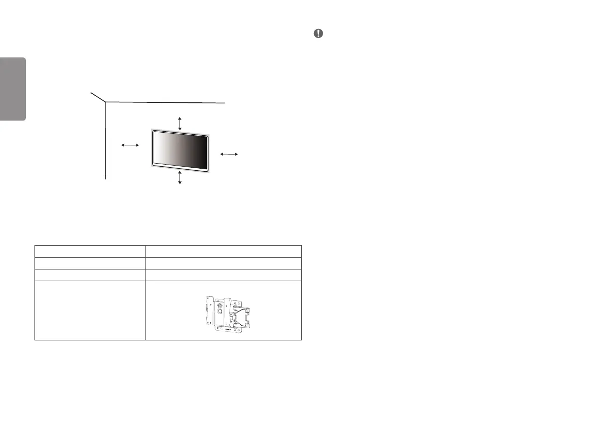 Bevestig de monitor ten minste 100mm van de muur af en laat ongeveer 100mm ruimte aan alle kanten van
