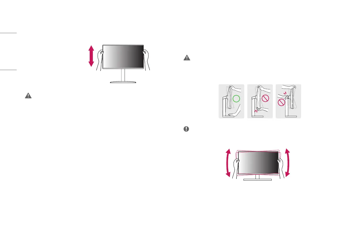 • Be careful not to touch or press the screen area when adjusting the angle of the monitor.