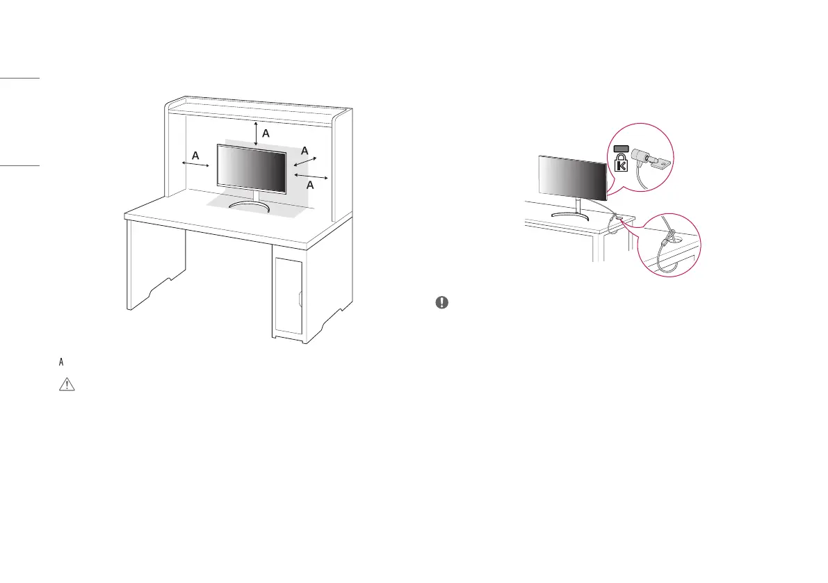 • Lift the monitor and place it on the table in an upright position. Place the monitor at least 100mm away from