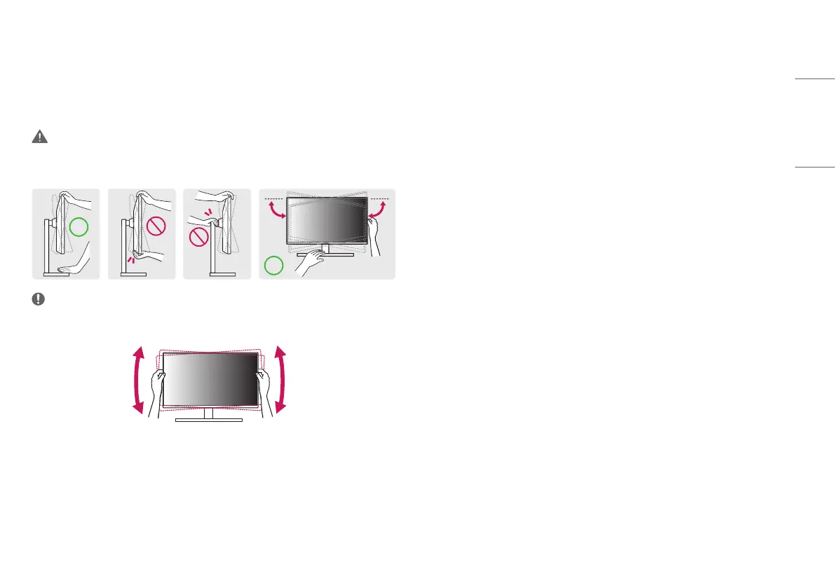 • 调节显示器角度时,注意不要触摸或按压屏幕区域。