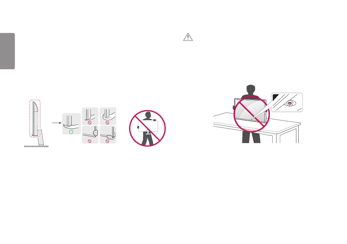 • Hold the bottom and side of the monitor frame firmly. Do not hold the panel itself.