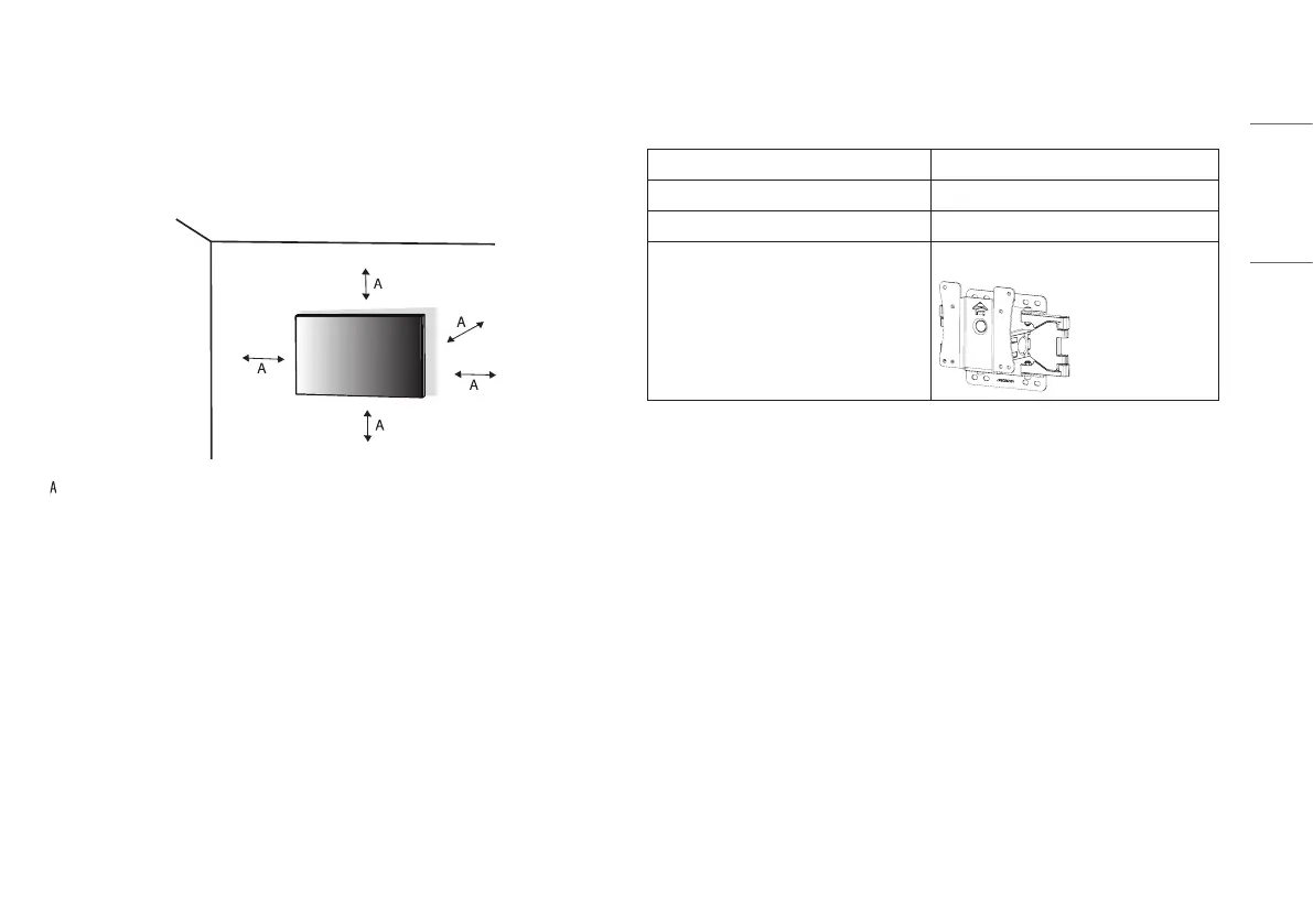 Install the monitor at least 100mm (3.9inches) away from the wall and leave about 100mm (3.9inches)