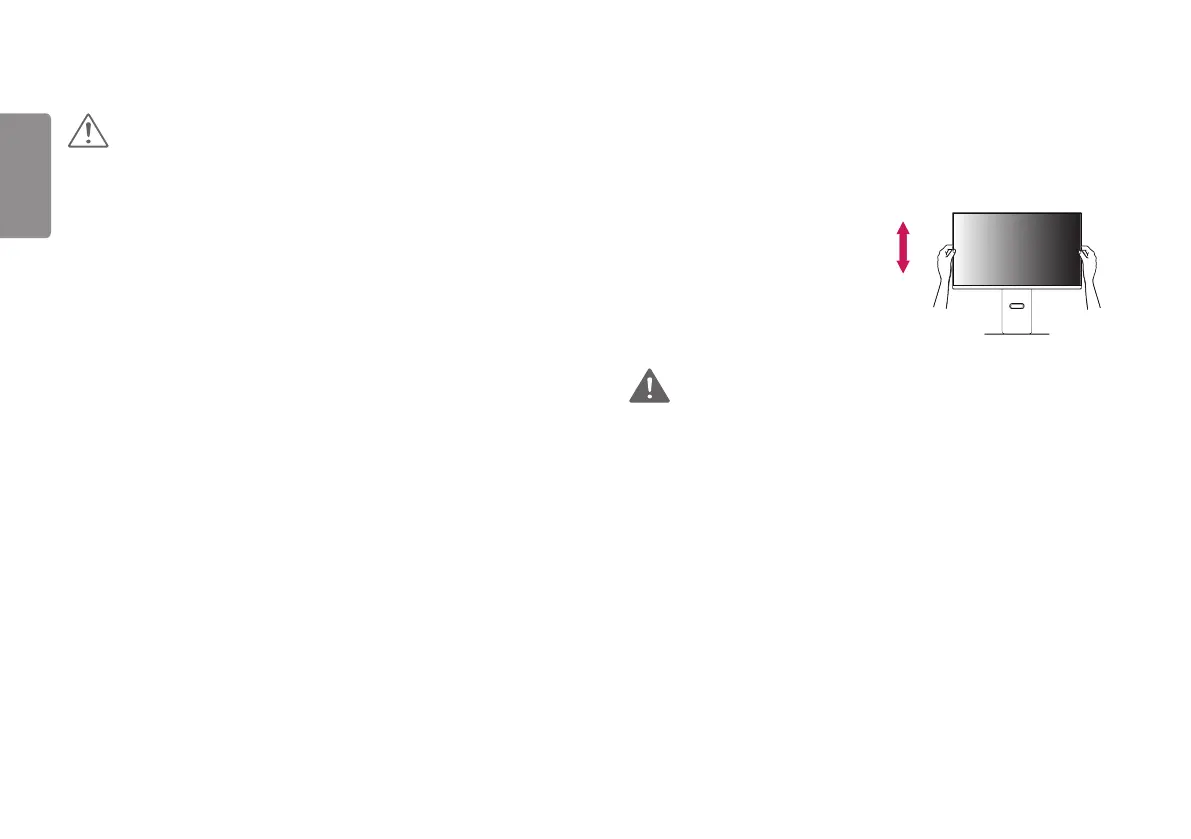 • Plaats uw hand niet op de standaard als u de hoogte van het scherm aanpast, om