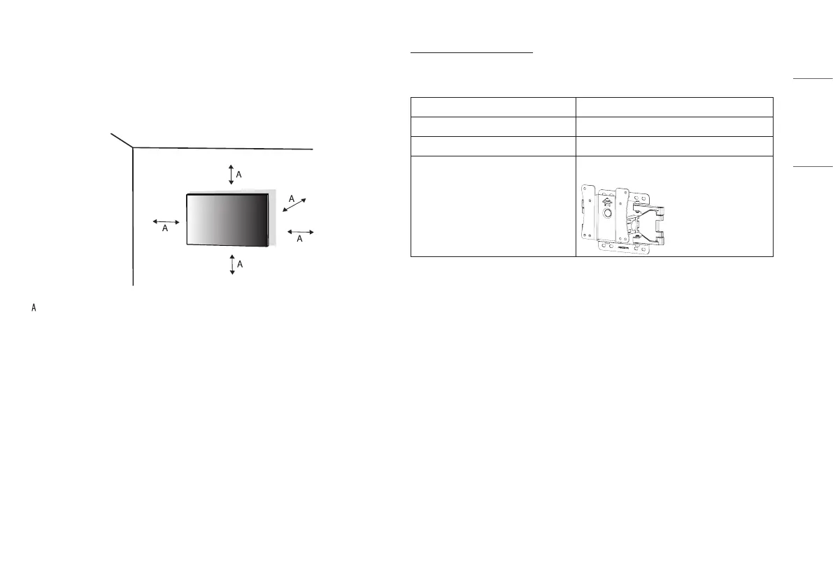 Install the monitor at least 100mm (3.9inches) away from the wall and leave about 100mm (3.9inches) of space at