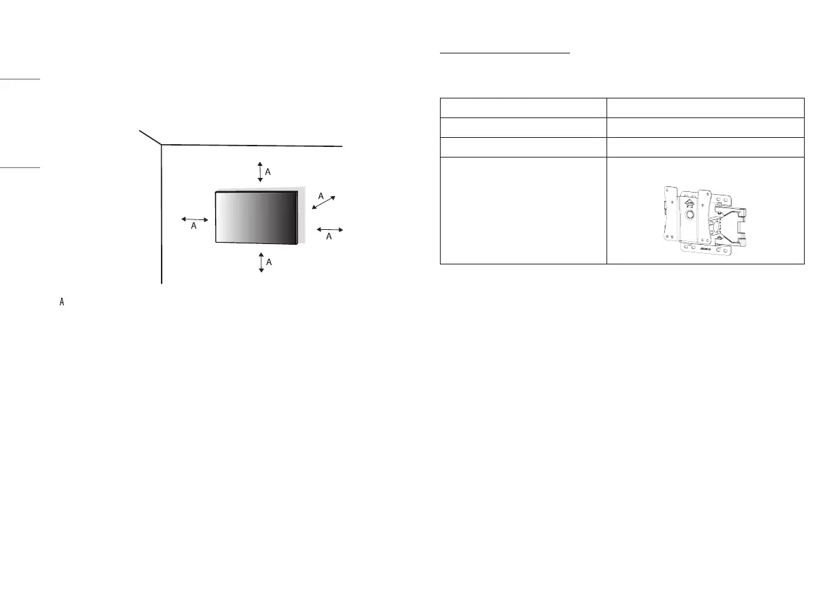 Install the monitor at least 100mm away from the wall and leave about 100mm of space at each side of the