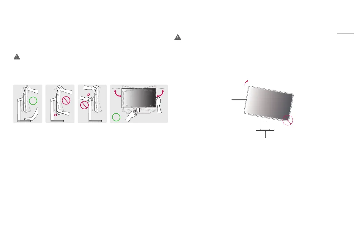 • Raak het scherm niet aan en druk er niet op wanneer u de kijkhoek van de monitor aanpast.