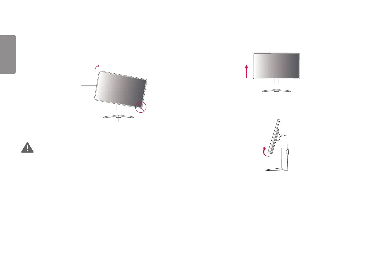 • Wanneer u de monitor met behulp van de roteerfunctie wilt draaien, doe dat dan